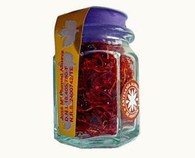 Azafrán del Jiloca de alto poder saborizante ,colorante y aromático ,elaborado de manera totalmente artesanal y manual con el sello de Artesanía Alimentaria de Aragón .Bote de cristal de 1 gr.